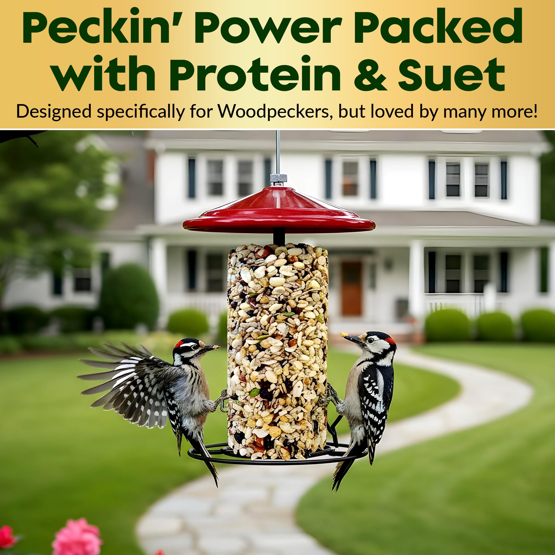 Woodpecker Bird Seed Cylinders with Hole β Premium Woodpecker Food Blend with Sunflower Chips, Peanuts & Suet β Natural High Energy Bird Seed, No Filler, No Shell, No Mess β USA Made (4" x 7.75")